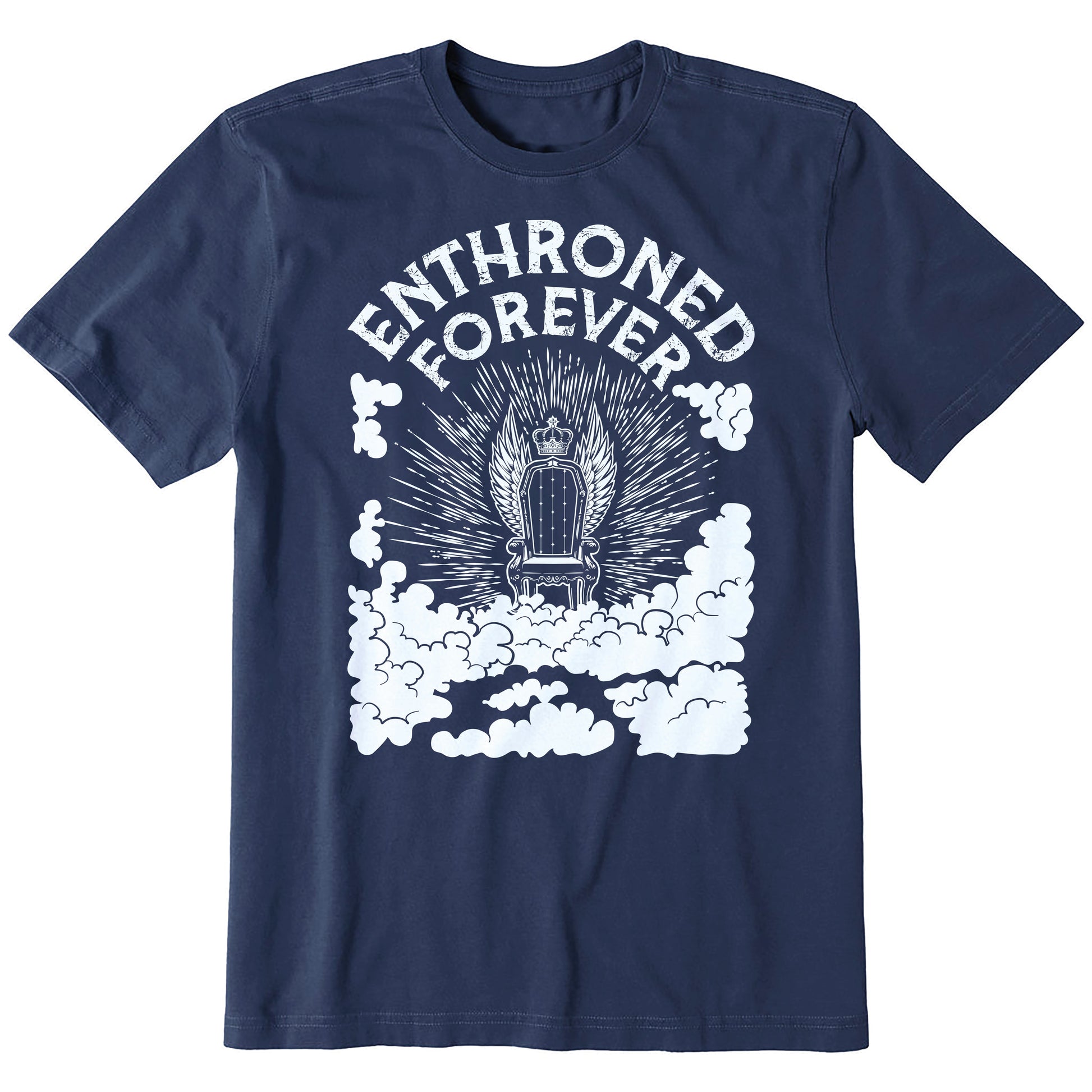"Christian t-shirt with ‘Jesus Enthroned Forever’ design, celebrating Christ’s eternal reign. A bold faith tee perfect for worship and everyday wear."